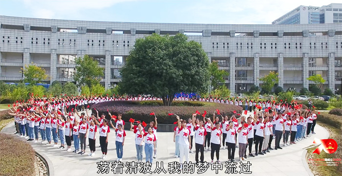 拍摄中,来自我校教学、科研、医疗、管理、后勤一线的教职工和一千余名学生参与本次活动。他们以饱满的热情和嘹亮的歌声,为祖国的繁荣昌盛送去最诚挚的问候与祝福。