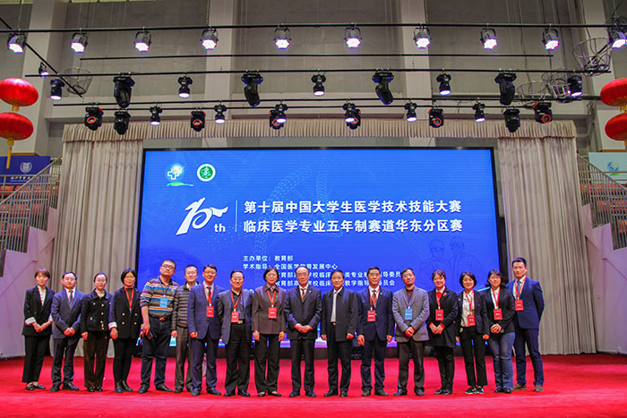 “汤老师,这里的屏幕不亮了”“没事,你拿一块校旗放在这里挡一下就行……”比赛的前一晚,我校体育馆内灯火通明,汤健忙碌的身影穿梭在各个赛道之间。他亲自指导布置赛道的各项工作,一遍又一遍地根据现场演练情况完善试题。筹备组成员吴俊华回忆起大赛的筹备工作,感慨道:“当时已经是晚上十点多了,汤教授一直在现场指导工作,他是发自内心热爱这份工作,热爱教学,热爱学生,他是我们学习的榜样!”汤健将“力行”的安医精神融入工作中,也鼓舞和带动了身边人,最终这场华东六省一市46所高校参加的“‘医’林争霸赛”完美收官,获得了主办方和参赛选手们的一致好评。