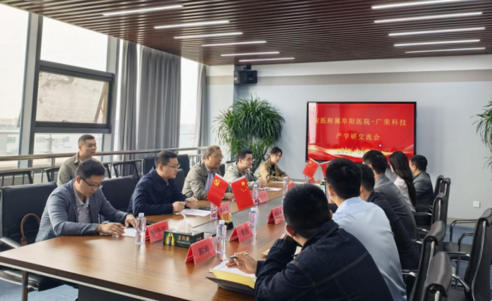 医院办公室、科研部相关负责人,安徽广荣养老科技有限公司相关负责人和技术专家参加交流。(附属阜阳医院 张凤)