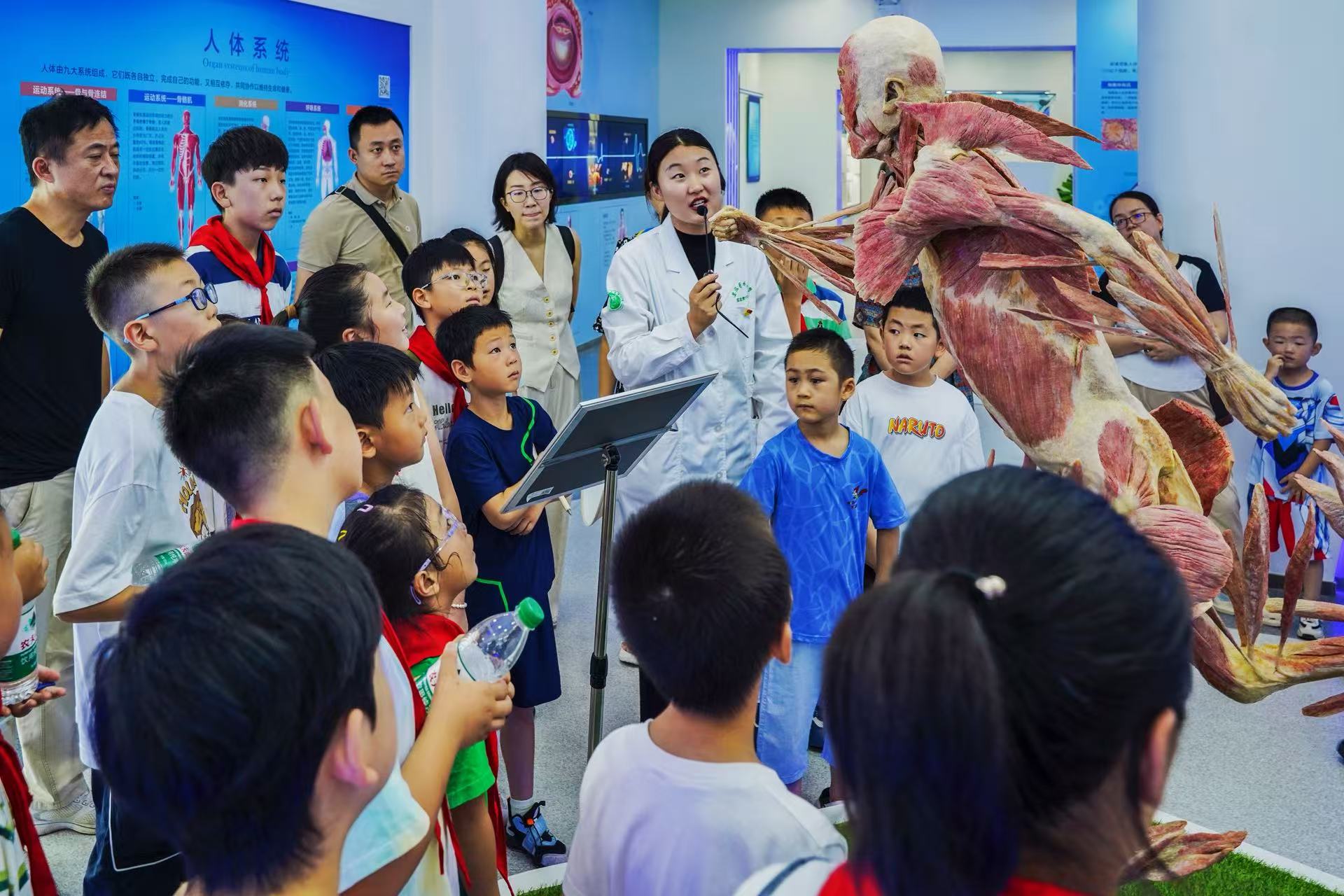 在专业讲解员的带领下,同学们依次参观各展区,深入了解人体器官的分布与功能,观察健康与病变组织的差异,直观感受生命的复杂与脆弱。“原来心脏跳动时是这样的!”“大脑的构造太神奇了!”参加活动的西园新村小学北校安大校区2021级(2)班星梦小队的队员们惊叹连连,在互动中加深了对生命的敬畏与珍视。